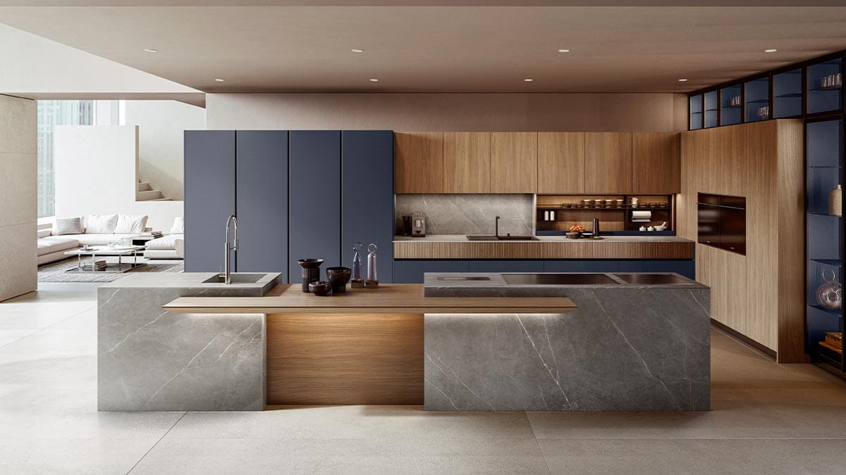 Essential forms, limpid geometries, architectures integrated into the living environment. An ideal synthesis of practicality and a contemporary interpretation of the pleasure of family intimacy. Functional solutions inspired by the search for maximum freedom of composition, where refined design is in constant dialogue with an aesthetic attentive to the new ways of living in the kitchen of today and tomorrow.
